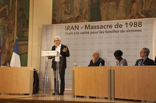 والوزير الفرنسي السابق برنارد کوشنر أکد قائلا: نحن نطالب المجتمع الدولي ان يتبنی مجزرة ثلاثين ألفاَ من السجناء السياسيين ليس فقط بهدف تخليد ذکری الضحايا بل لمحاکمة ومعاقبة الجناة أيضاَ. وتخليد ذکری الضحايا يتطلب منا تصعيد الضغوط حتی يتم الاعتراف بهذه الجرائم وتبدأ التحقيقات الدولية.