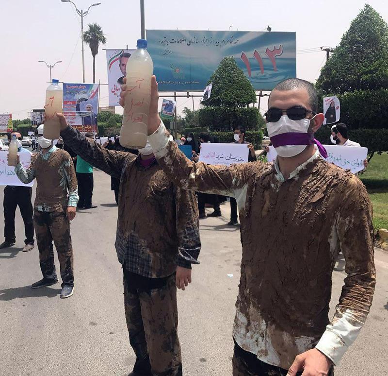إيران.. احتجاجا عليه .. شباب الأهواز يستقبلون روحاني بالأقنعة و الماء العکر+ صور