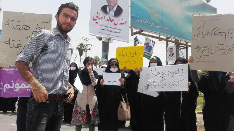 کان الملا المحتال «حسن روحاني» قد ذهب إلی مدينة الأهواز يوم الثلاثاء 16 مايو/ أيار2017 بهدف خطاب دعائي عشية مهزلة الإنتخابات الرئاسية حيث واجه بسخرية الشباب وأهالي المدينة. وشکل أهالي المدينة سلسلة بشرية باستخدام الأقنعة وماء العکر احتجاجا علی زيارة روحاني.