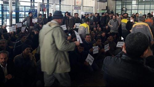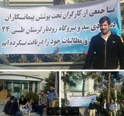 تجمع عمال ومقاولون سد رودبار بمحافظة لرستان اليوم مقابل مبنی مصلحة الماء والموارد الطبيعية مطالبين بدفع رواتبهم المتأخرة.